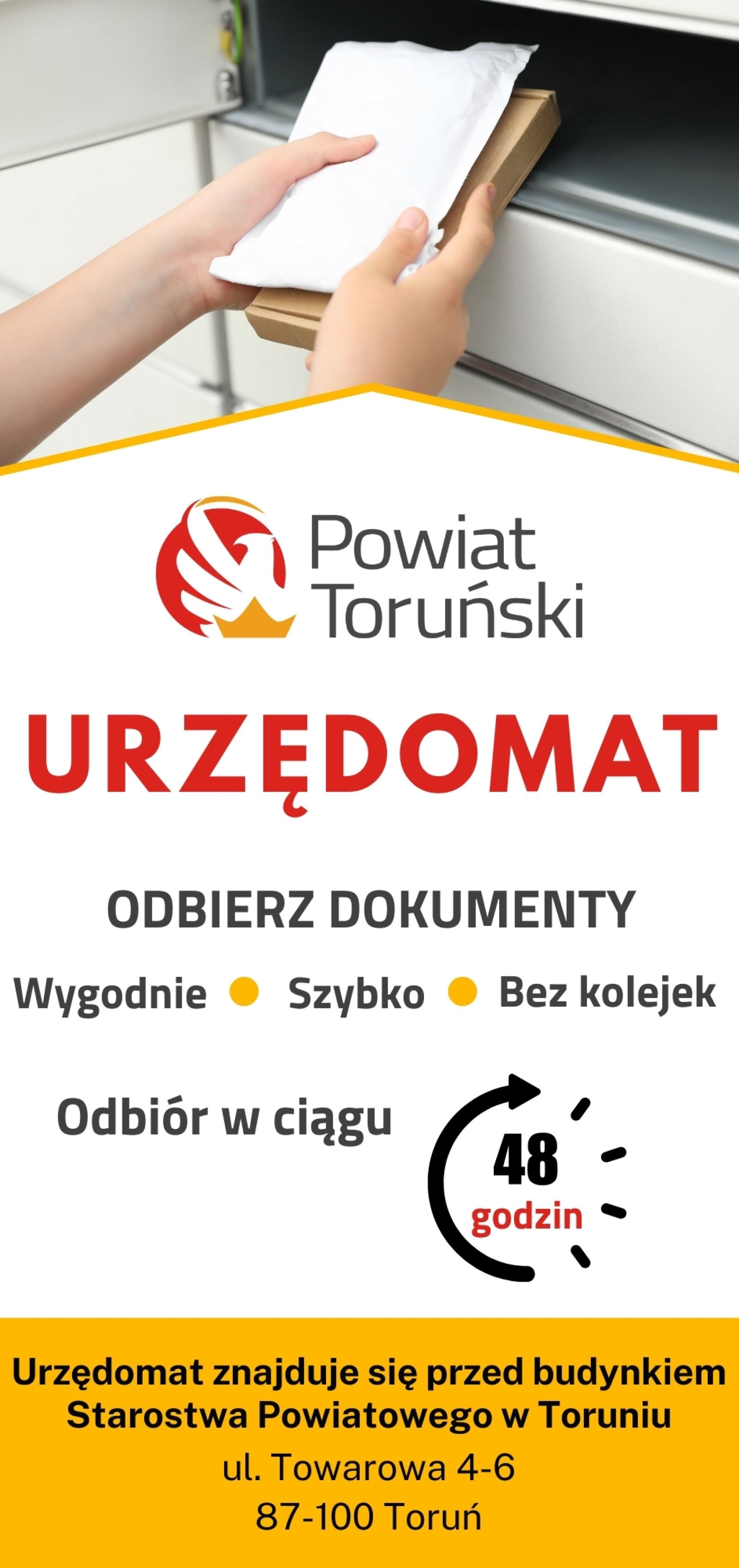W Starostwie Powiatowym w Toruniu działa Urzędomat – nowoczesne rozwiązanie, które ułatwia odbiór dokumentów bez konieczności stania w kolejce i dostosowywania się do godzin pracy urzędu. To kolejny krok w stronę sprawnej i przyjaznej obsługi mieszkańców.