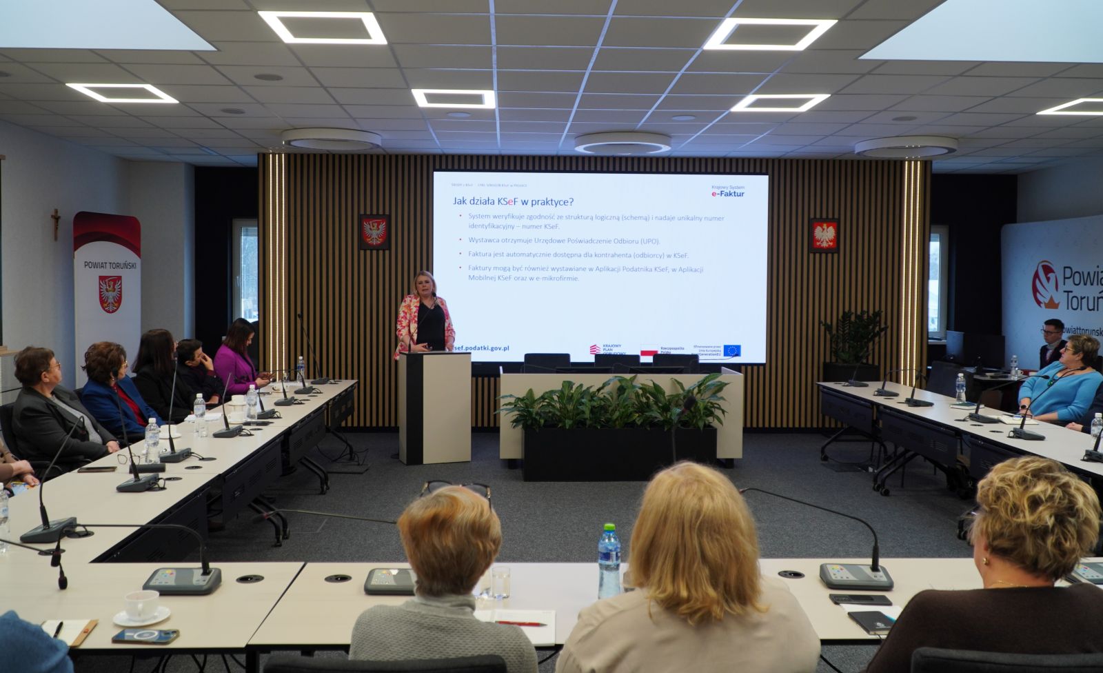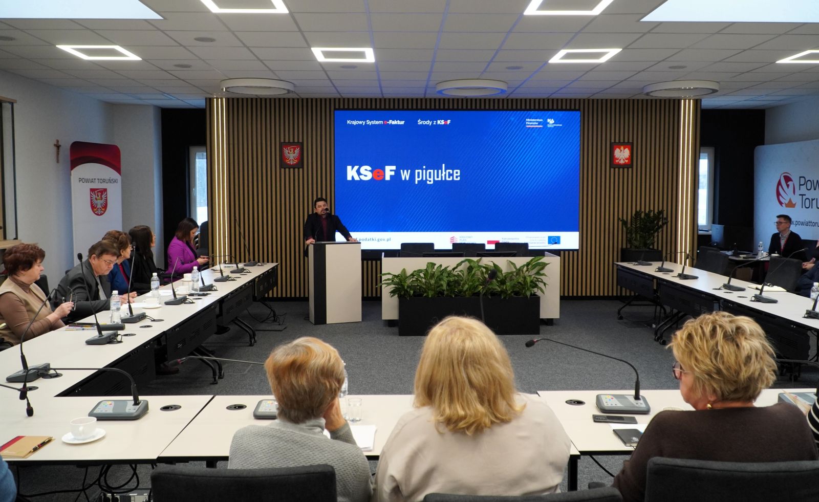 Dzisiaj, 9 lutego 2026 r. w Starostwie Powiatowym w Toruniu odbyło się ostatnie z dwóch zaplanowanych szkoleń pt. „Krajowy System e-Faktur – nowy obowiązek”, organizowanych przez Powiatowy Zespół Doradztwa Rolniczego w Toruniu z siedzibą w Chełmży, we współpracy z Drugim Urzędem Skarbowym w Toruniu, Biurem Powiatowym Agencji Restrukturyzacji i Modernizacji Rolnictwa (ARiMR) w Toruniu oraz Starostwem Powiatowym w Toruniu.