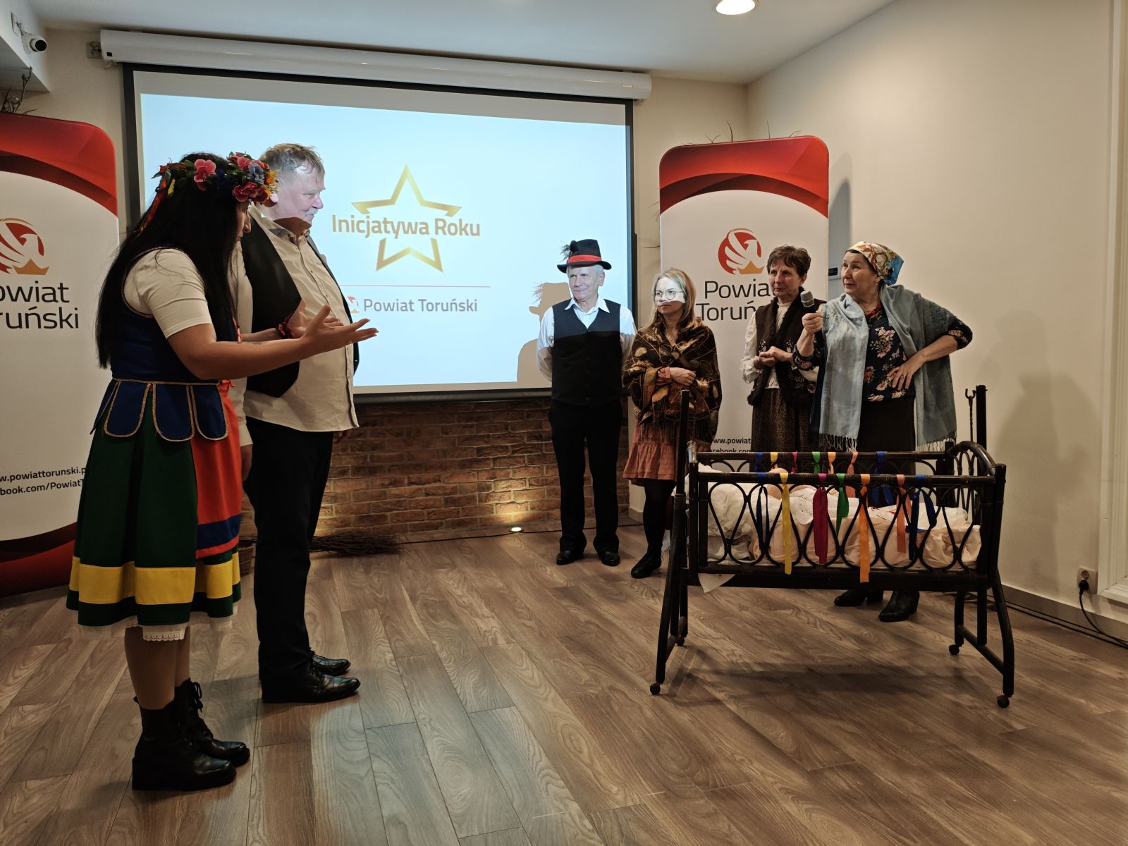 Spotkanie zakończyła inscenizacja sceniczna przygotowana przez Stowarzyszenie „Czyż‑Nie” z Czernikowa - „Włęckie chrzciny”, nawiązująca do dawnych obyczajów i tradycji ludowych regionu. Przedstawienie przeniosło publiczność w świat dawnych rytuałów rodzinnych, pełnych humoru, symboliki i lokalnego kolorytu.