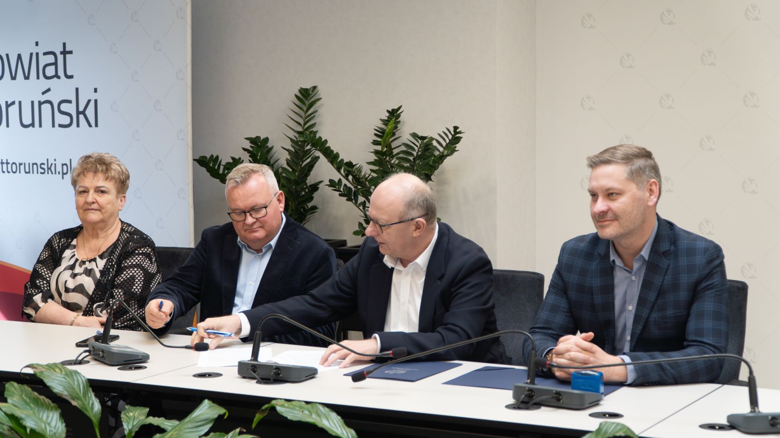 Inwestycje drogowe w Powiecie Toruńskim nie zwalniają tempa. Dzisiaj w Starostwie Powiatowym gościliśmy Wicewojewodę Kujawsko-Pomorskiego Michała Koniucha, który wspólnie ze Starostą Toruńskim Mirosławem Graczykiem, Wicestarostą Tomaszem Zakrzewskim i skarbnikiem powiatu Danutą Jabłońską-Drążelą sfinalizował formalności dotyczące dofinansowania rozbudowy drogi powiatowej nr 2022C. W wydarzeniu uczestniczyłi również członkowie Zarządu Powiatu Agnieszka Janiaczyk-Dąbrowska i Mirosław Nawrotek.