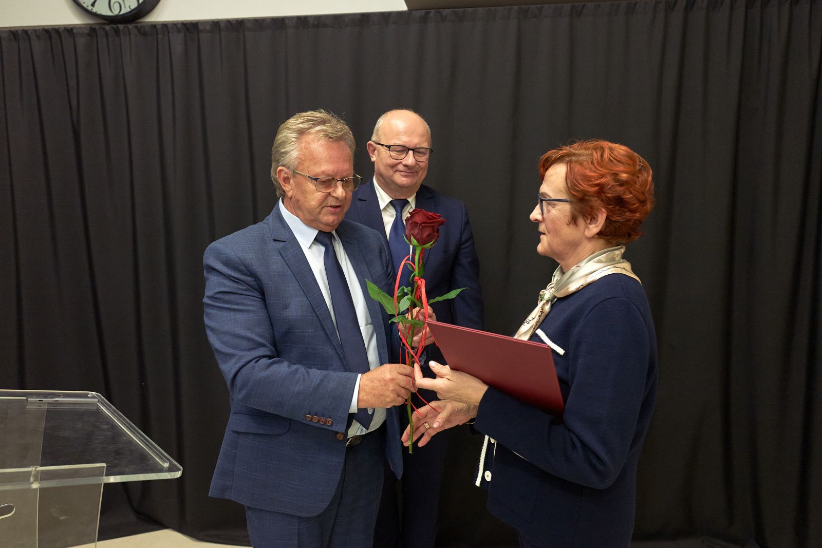 Starosta Toruński Mirosław Graczyk wraz z Przewodniczącym Rady Powiatu Toruńskiego Andrzejem Siemianowskim wręczyli Akt Nadania Katarzynie Janas, członkowi Rady Seniorów Powiatu Toruńskiego, która była nieobecna podczas pierwszego, inauguracyjnego posiedzenia Rady Seniorów.