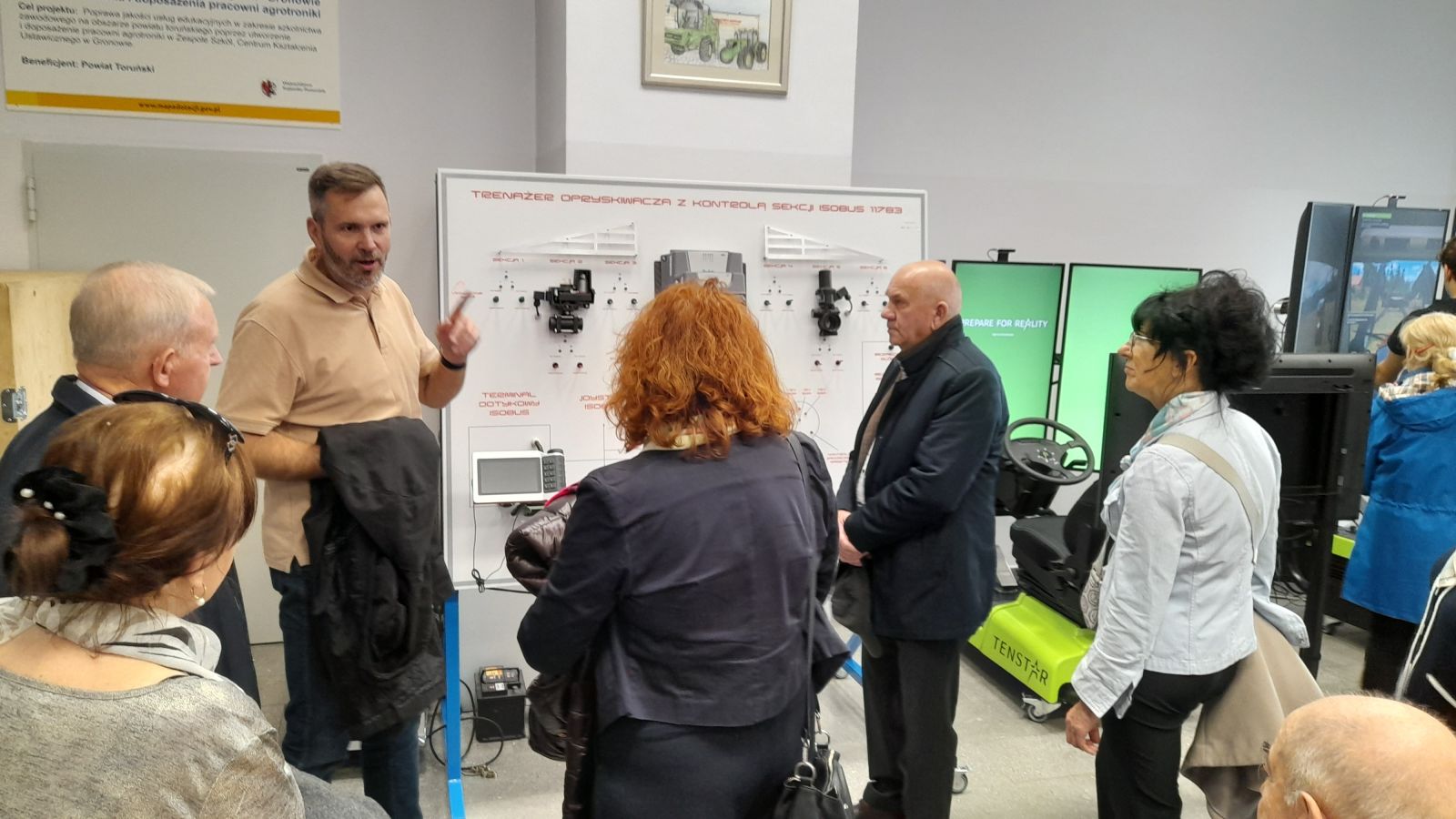 Przewodnikiem po placówce był Michał Rycharski —jej nauczyciel, Kierownik Gospodarczy i Szkolenia Praktycznego. Seniorzy odwiedzili m.in. pracownię gastronomiczną, matematyczną, informatyczną, pokój nauczycielski, bibliotekę, pracownię fitness, siłownię oraz halę sportową. Zatrzymując się przy Muzeum Techniki Rolniczej zaciekawił fakt, że wszystkie znajdujące się w Muzeum maszyny są sprawne technicznie. W części warsztatowej seniorzy zwiedzili stację kontroli pojazdów, zakład spawalniczy oraz pracownię agrotroniki, gdzie uczniowie ćwiczą na symulatorach maszyn rolniczych, wykorzystując technologię GPS. Członek Rady Seniorów, Jolanta Jakóbowska, jako jedyna odważyła się spróbować swoich sił na symulatorze automatycznego sterowania układem kierowniczym. Jak przyznała, nie było to łatwe zadanie, choć uczniowie chętnie udzielali praktycznych wskazówek.