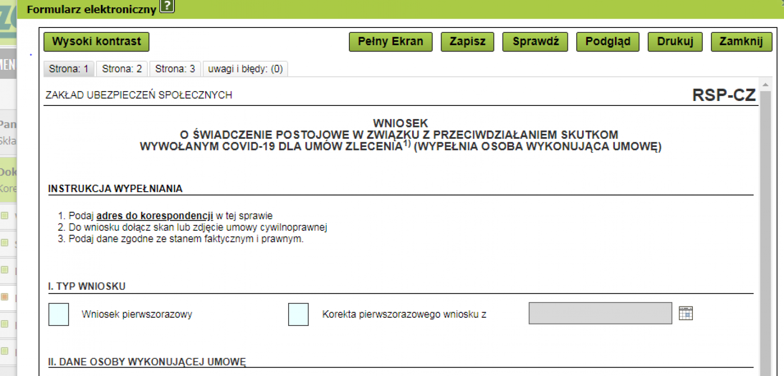 drukuj (ZUS udostępnił wniosek o postojowe dla zleceniobiorców)