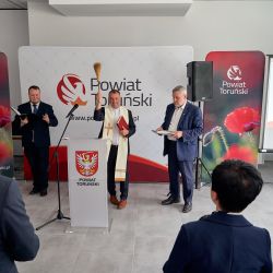 Starosta Toruński Marek Olszewski i Przewodniczący Rady Powiatu Toruńskiego Paweł Polikowski wręczyli podziękowania osobom najbardziej zasłużonym dla powstania nowej siedziby ŚDS. Otrzymali je: parlamentarzyści – Anna Gembicka, Joanna Borowiak i Jan Krzysztof Ardanowski, Wicewojewoda Józef Ramlau, członek Zarządu Powiatu Kazimierz Kaczmarek, Wójt Gminy Obrowo Andrzej Wieczyński (podziękowania w jego imieniu odebrała zastępca wójta Joanna Zielińska), Sławomir Szymański z firmy Bud – Eko (wykonawca), Krzysztof Lisewski z firmy Pro – Kor (projektant) oraz Krzysztof Szymański (inspektor nadzoru budowlanego).