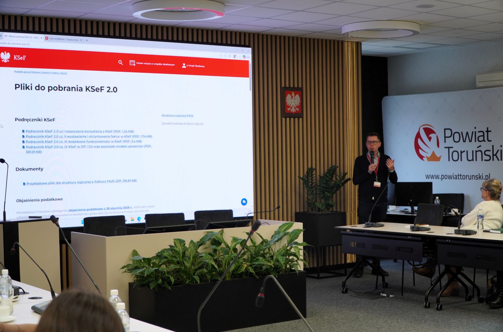 Dzisiaj, 9 lutego 2026 r. w Starostwie Powiatowym w Toruniu odbyło się ostatnie z dwóch zaplanowanych szkoleń pt. „Krajowy System e-Faktur – nowy obowiązek”, organizowanych przez Powiatowy Zespół Doradztwa Rolniczego w Toruniu z siedzibą w Chełmży, we współpracy z Drugim Urzędem Skarbowym w Toruniu, Biurem Powiatowym Agencji Restrukturyzacji i Modernizacji Rolnictwa (ARiMR) w Toruniu oraz Starostwem Powiatowym w Toruniu.