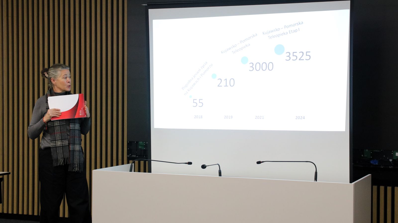Dyrektor Centrum Opieki Wytchnieniowej ,,Dom Światła” w Grębocinie Agnieszka Mirończuk-Mazanowska opowiedziała o placówce, którą kieruje. Centrum Opieki Wytchnieniowej działa od 3 lat i jest dedykowane dla opiekunów osób chorych, starszych i niepełnosprawnych, poprzez możliwość uzyskania doraźnej, czasowej pomocy w formie opieki wytchnieniowej. Placówka oferuje pobyt całodobowy dla 15 osób, pobyt dzienny, a także poradnictwo specjalistyczne dla opiekunów.