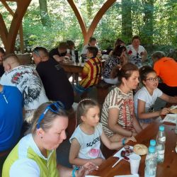 Nadleśnictwo Dobrzejewice oraz strażacy z OSP zadbali o atrakcje w punkcie turystyczno-edukacyjnym „Zielony Zakątek”. Było malowanie masek z kamieni, gry i zabawy przyrodnicze, rzucanie szyszką, pokaz sprzętu strażackiego. Dla orzeźwienia była zimna woda do picia i kurtyna wodna, a dla posilenia pyszna kiełbaska z grilla, grochówka i drożdżówka.