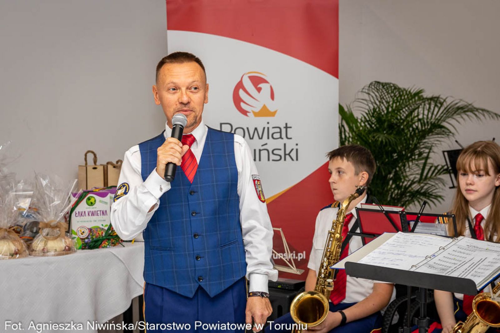 Dzięki ogromnemu poparciu – ponad 1 700 oddanych głosów dla projektu zgłoszonego do budżetu obywatelskiego – mieszkańcy powiatu mogli po raz kolejny wziąć udział w spotkaniach z kulturą. Tym razem muzyka rozbrzmiała dla sołtysów i pań z kół gospodyń wiejskich w czasie ich dorocznego Zjazdu w Ośrodku Wypoczynkowym Grodno. Po części merytorycznej spotkania na scenę Sali Bankietowej wkroczyli muzycy z Orkiestry Dętej Gminy Zławieś Wielka. Występ sfinansowany został z budżetu obywatelskiego powiatu toruńskiego i był to już trzeci z pięciu zaplanowanych w projekcie koncertów.