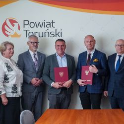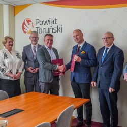 Umowę podpisali: Adam Orłowski – Dyrektor Powiatowego Zarządu Dróg w Toruniu i Paweł Zieliński – Prezes Zarządu spółki REMIKOP Sp. z o.o., wykonawca inwestycji.
