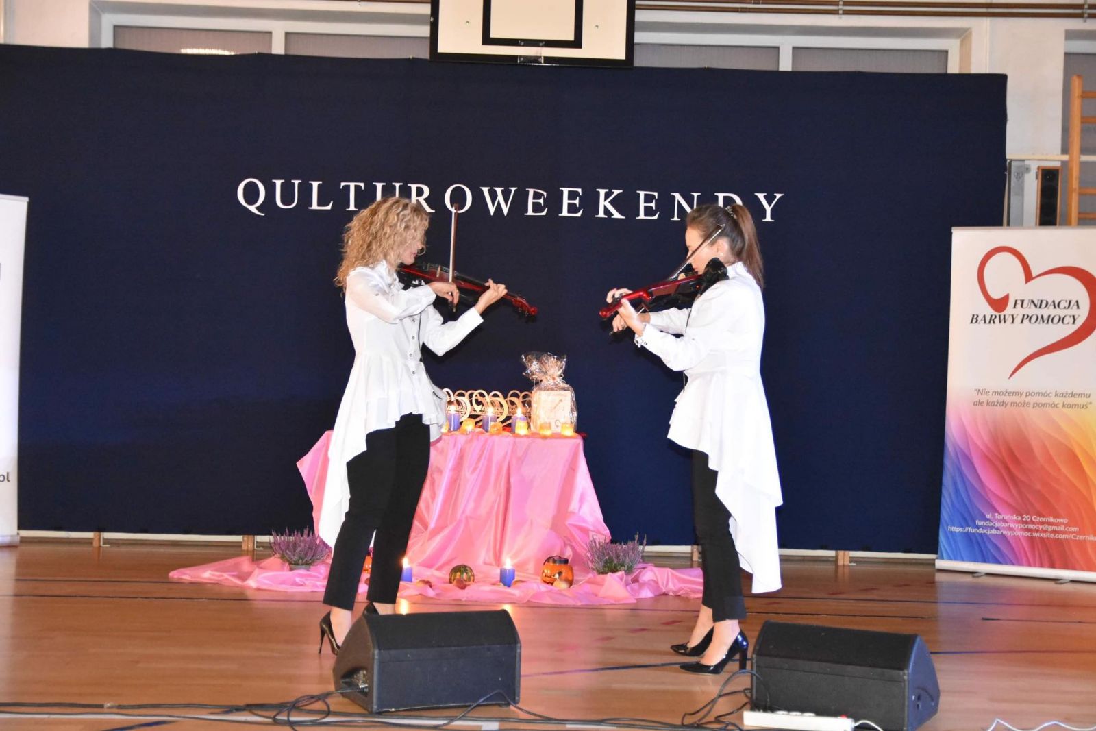 To właśnie dzięki głosom mieszkańców naszego powiatu oddanym na projekt Qulturoweekendy zgromadzona - w sobotnie popołudnie, w Szkole Podstawowej w Osieku - publiczność miała okazję wysłuchać niesamowitego jesiennego koncertu skrzypcowego. Na scenie zagrały prawdziwe Królowe Skrzypiec – Anita i Karolina – absolwentki Akademii Muzycznej w Bydgoszczy na stałe współpracujące z Orkiestrą Symfoniczną Filharmonii Pomorskiej. Obie grają na skrzypcach klasycznych, zainspirowane twórczością Vanessy Mae założyły w 2007 roku muzyczny duet, a obecnie na swoim koncie mają ponad 400 koncertów w Polsce i za granicą.